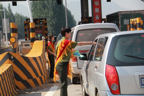 宣化東收費(fèi)站為司乘發(fā)放安全宣傳單