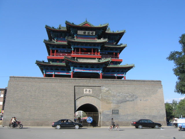 圖片說明:清遠(yuǎn)樓又名鐘樓,位于古城宣化正中。始建于明成化十八年(1482年), 是一座重搪多角十字脊歇山頂?shù)母叽蠼ㄖ。與城內(nèi)鎮(zhèn)朔樓、拱極樓成一軸線。券洞內(nèi)500 年前的鐵輪車轍明顯可見。樓內(nèi)懸有明嘉靖十八年公元年鑄造的宣府鎮(zhèn)城鐘一口,高5米,口徑7米,重約萬斤,用四根通天柱架于樓體上層中央。鐘聲悠揚(yáng)宏亮,可傳40余里,頗負(fù)盛名。該樓造型別致,結(jié)構(gòu)精巧嚴(yán)謹(jǐn)。可與武漢黃鶴樓媲美,在國(guó)內(nèi)同屬罕見,素有“第二黃鶴樓” 之稱。